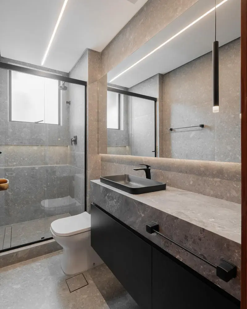 Neste projeto, de reforma de um apartamento em Porto Alegre, um dos ambientes revitalizados foi o banheiros social para atender às expectativas de um pai e filho que buscavam modernidade e praticidade sem abrir mão do conforto. O desafio foi atualizar o espaço com soluções funcionais e sofisticadas, maximizando a utilização do ambiente compacto. Escolhemos revestimentos duráveis e de fácil manutenção, além de uma marcenaria sob medida que otimiza o espaço. O projeto de iluminação, cuidadosamente planejado, adicionou um toque de modernidade e criou uma atmosfera acolhedora. O resultado é um banheiro que combina elegância e funcionalidade, refletindo o estilo de vida dos moradores e mostrando o impacto que um design bem pensado pode ter em espaços pequenos. Confira as fotos de "antes e depois" no nosso blog para ver a transformação impressionante!